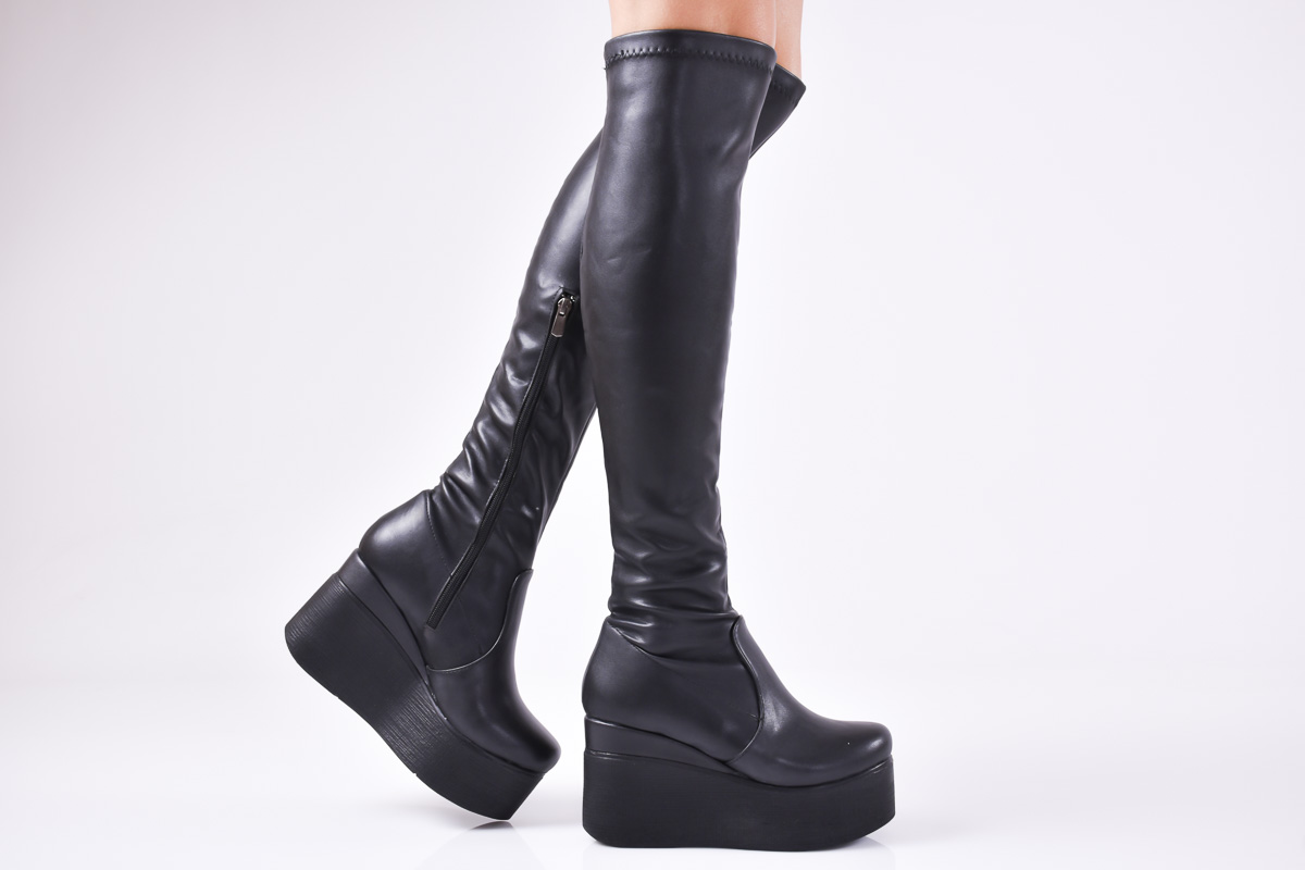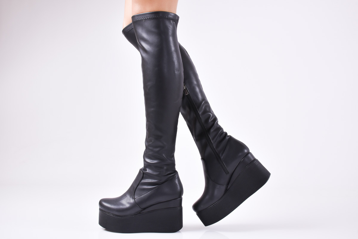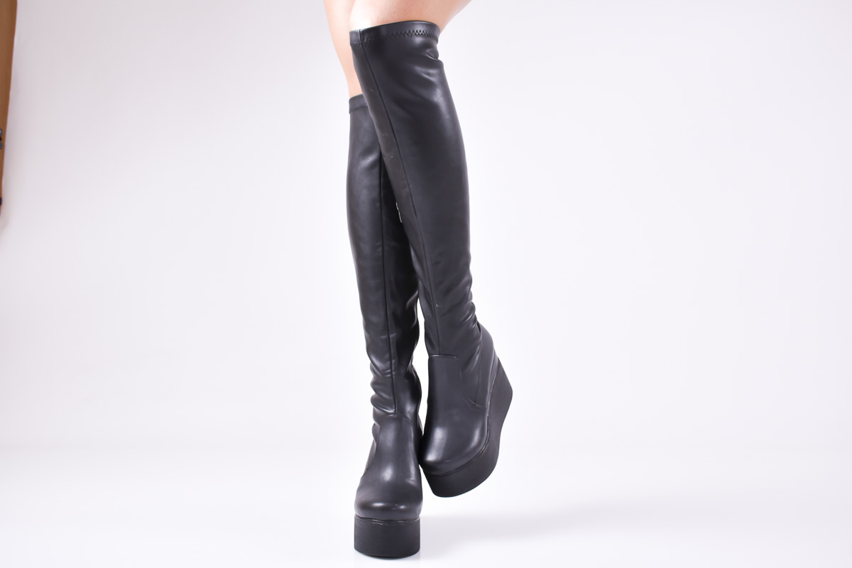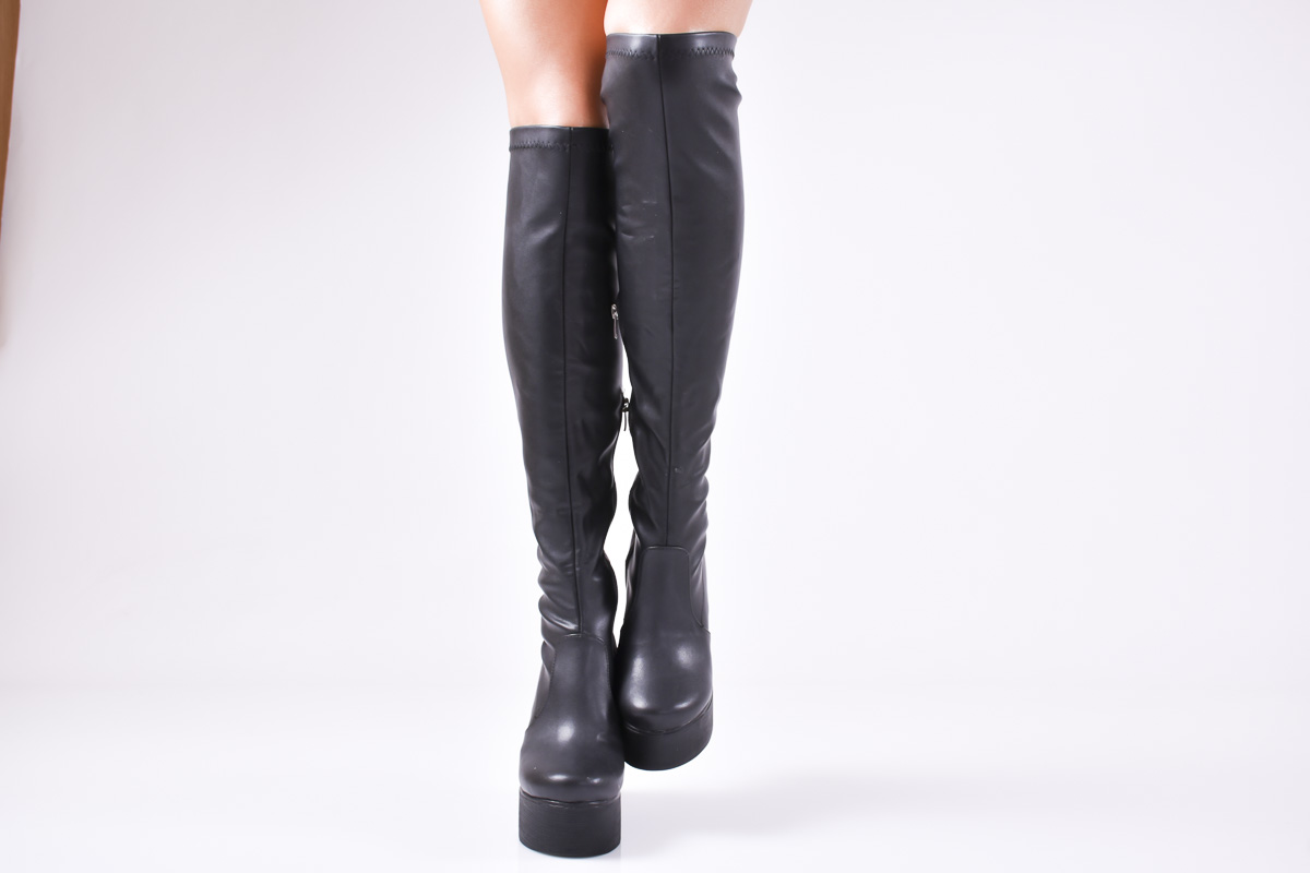 Дамски ботуши на платформа черни еко кожа RZOX-1010894